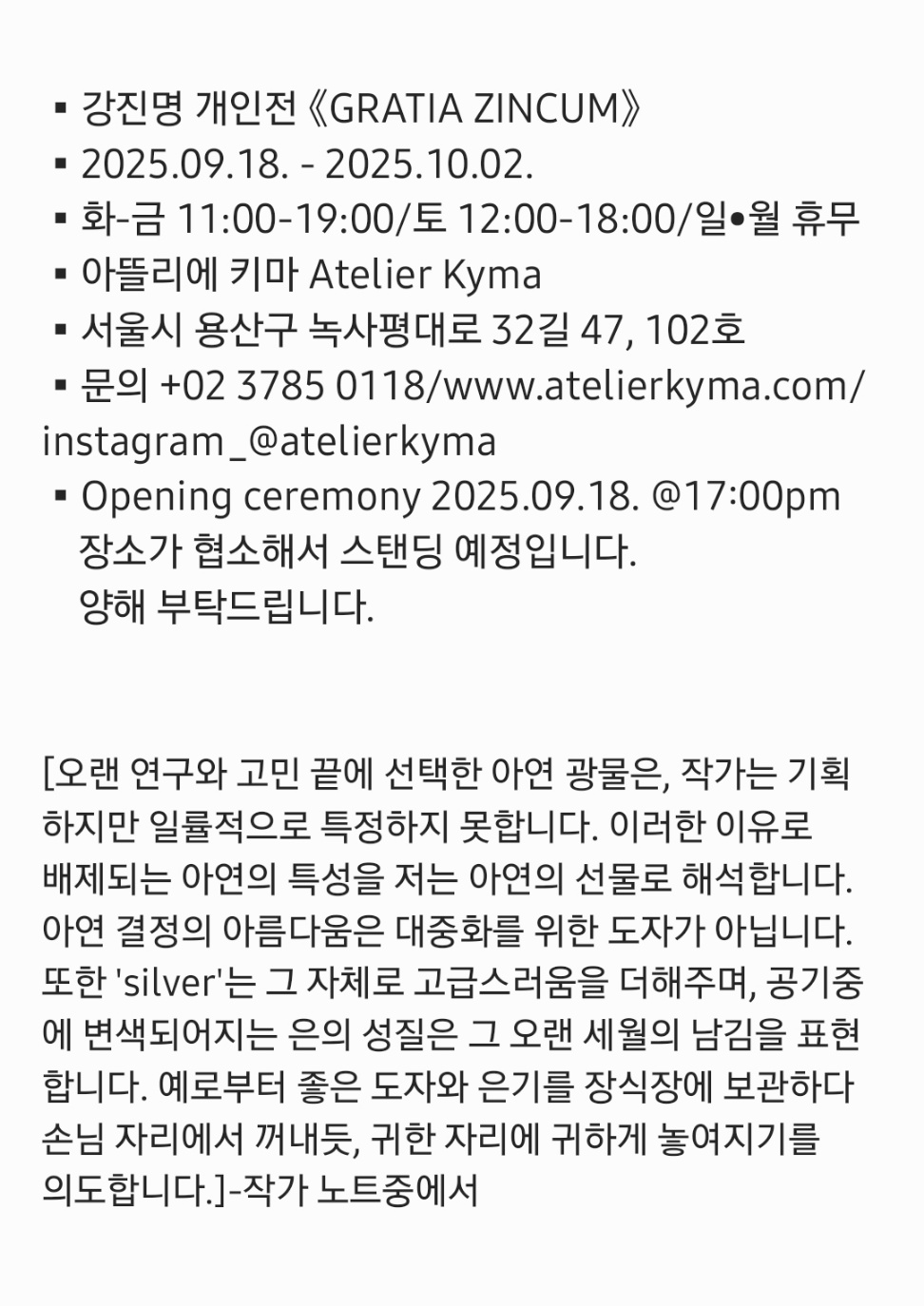 [오랜 연구와 고민 끝에 선택한 아연 광물은, 작가는 기획 하지만 일률적으로 특정하지 못합니다.